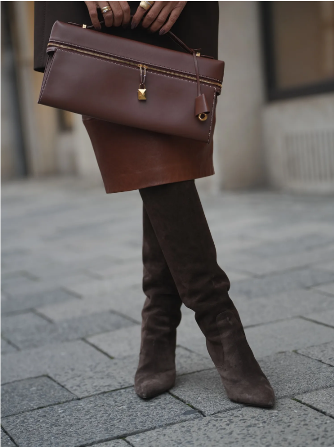 - Farbe und Textur: Neben klassischen Brauntönen werden neue Nuancen wie dunkles Schokoladenbraun, Rauchgrau und Marineblau immer beliebter. Sie betonen den sanften Glanz und die strukturelle Tiefe und werten so den Gesamtlook auf.